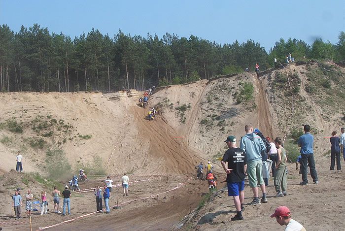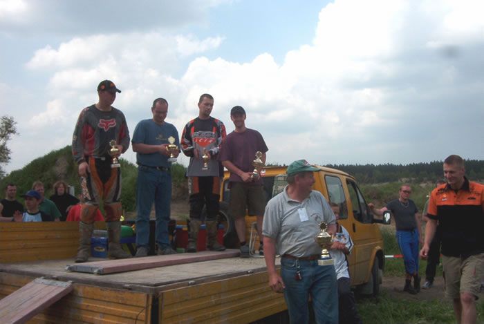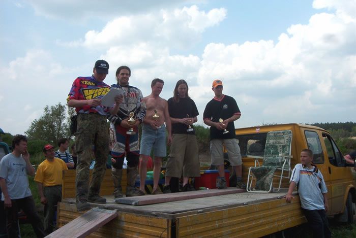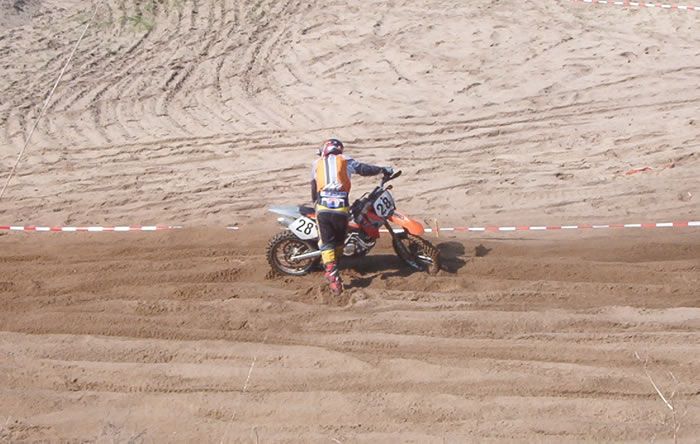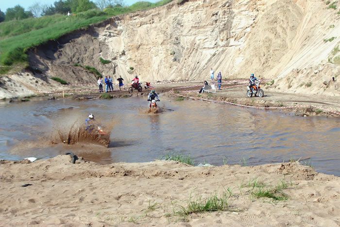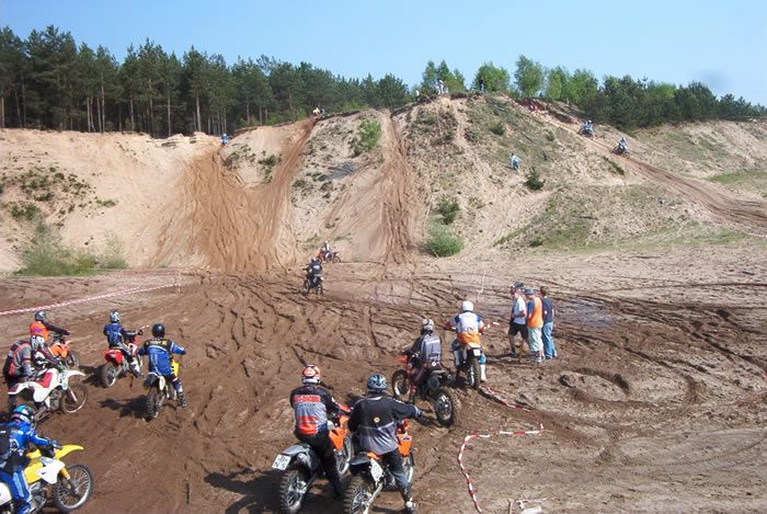 Gestern veranstaltete der MC "Fichtenring" Burg Stargard ein 3-h-Enduro in der Sandkuhle in Wahlsleben nahe Neuruppin. Es galt wie immer einen Rundkurs von ca. 5,6 km in 3 Stunden so oft wie möglich zu durchfahren. Diesmal OHNE STECHEN!! Der Kurs, den Rudi Gerhard da gebastelt hatte, war sehr anspruchsvoll. Ein Wasserloch, das ich eher als See bezeichnen würde, Steilauffahrten, wo sich etliche Leute ganz schön schwer taten, ein Steinfeld als „Trailsektion“, schmale Waldpfade und jede Menge Sand – alles war dabei. Der Kurs gab einem nirgendwo die Chance, sich mal auszuruhen. Somit waren nach den 3 Stunden auch alle ziemlich breit. Die Runden wurden diesmal mit Transpondern gezählt. Dies verlief reibungslos und unkompliziert. Neben den gefahrenen Runden und der Gesamtzeit standen auf der Auswertung auch noch die jeweils schnellste Runde, die langsamste Runde und die Durchschnittszeit pro Runde. Und die Auswertung ging sehr schnell. (Zum ersten Mal war ich bei einem Rennen bis zur Siegerehrung noch nicht mit umziehen und aufladen fertig.)