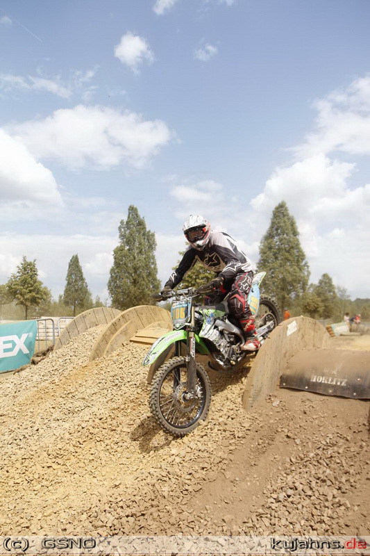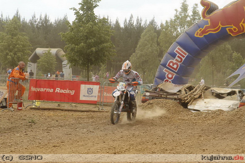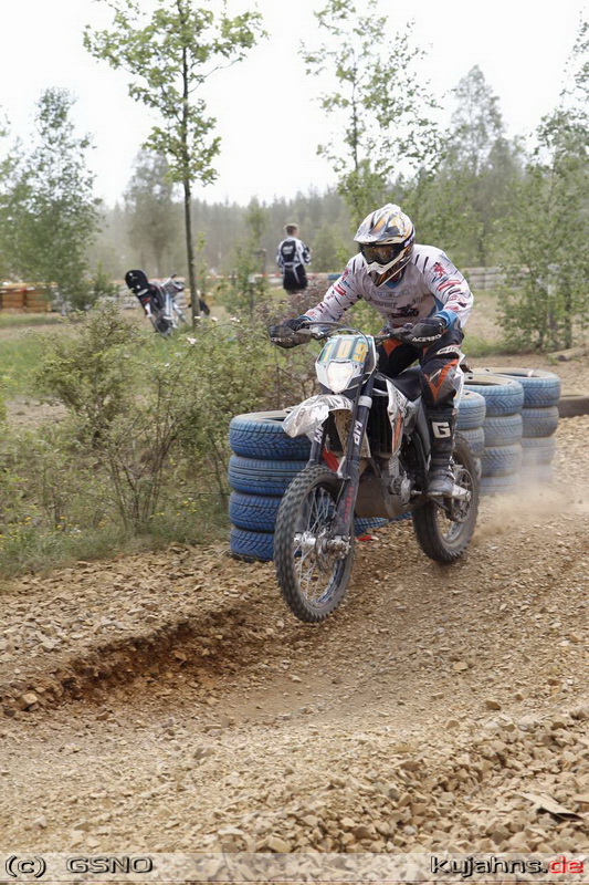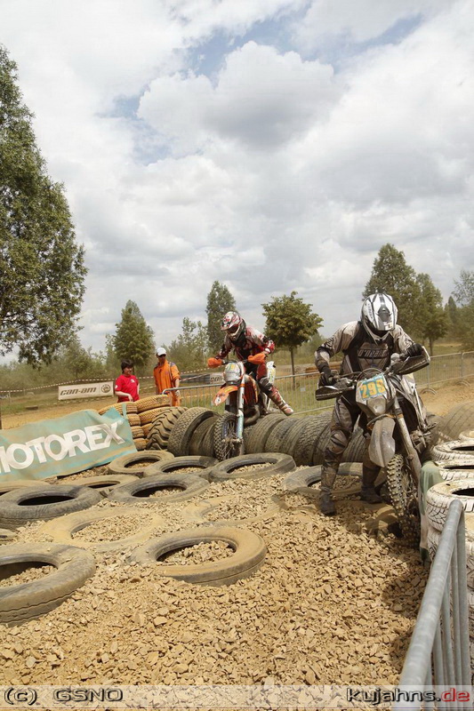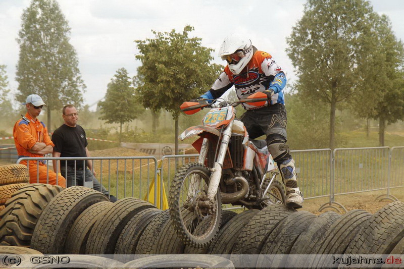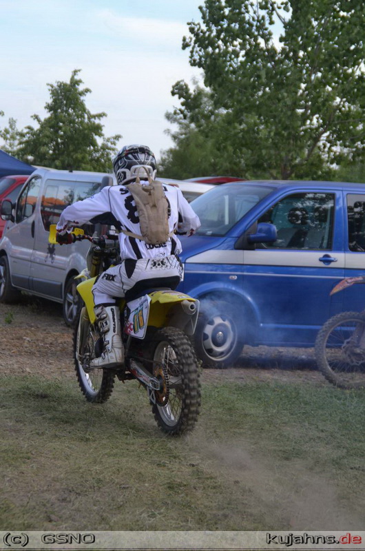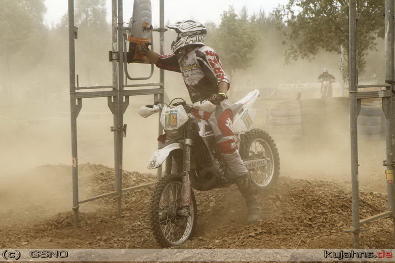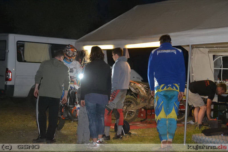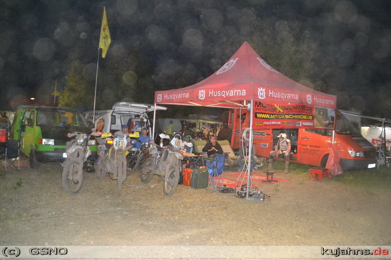 Im Vorfeld und während der Vorbereitungen waren von unserer Seite 5 GELÄNDESPORT NORDOST Mannschaften für den Start vorgesehen, wobei in einer ein familiär verhinderter Fahrer durch eine Aushilfe aus der MotoXschmiede ersetzt werden sollte. Dann kam es aber doch etwas anders: „Denn plötzlich sagte das Rookie-Team: *sing* ´Wir bleiben lieber hier!´, sie haben sich dann abgemeldet, dann waren’s nur noch vier. Nun fielen auch noch weit‘re aus und ohne Ersatz für jene zwei, blieb nichts and’res übrig und es waren nur noch drei …“ Aufgrund dieser Situation konnten also nur noch 12 GSNO-Fahrer im vollständigen Team die Herausforderung angehen. Dank der Kontakte der MotoXschmiede gelang es aber, durch Aufnahme der zwei verbliebenen Nordostler (meinen Bruder und mich), doch noch eine vierte Mannschaft zu komplettieren - inklusive dreiköpfiger Boxencrew. Als Team motoXschmiede.de gesellten wir uns in das GSNO-Boxenquadrat und erwarteten ein schönes Rennen. Was allerdings nicht heißen sollte, dass wir eine gemütliche Spazierfahrt durch den Lausitzer Sand durchzuführen gedachten – nein – es sollte schon so weit wie möglich im Ranking nach vorne gehen.
