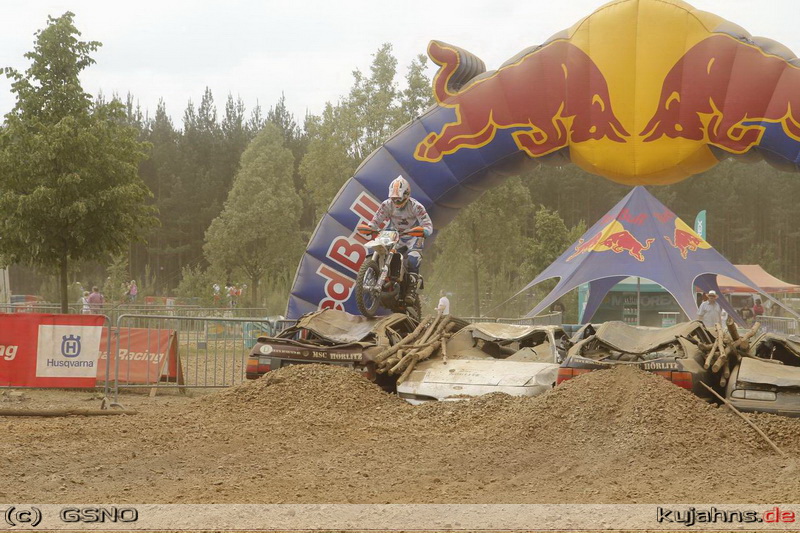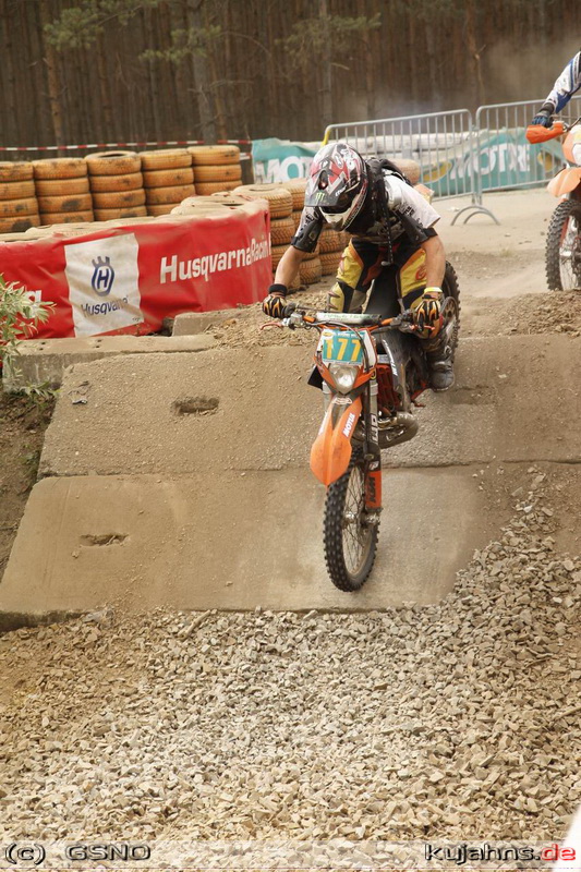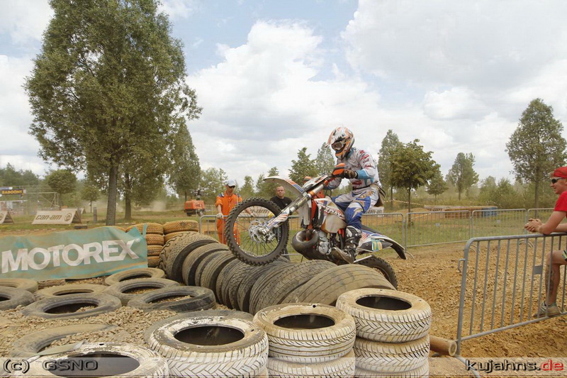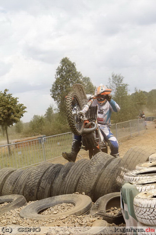 Und damit komme ich zur eingangs erwähnten Klärung, ob das ganze ein Vergnügen war: Es ist ja so, dass der Endurofahrer an sich als eine solche Sorte Mensch bekannt ist, der eine gewisse Leidensbereitschaft sowie -fähigkeit innewohnt. Dem wird in nicht geringem Maße Nachdruck verliehen durch die freiwillige Teilnahme an Veranstaltungen, deren Ziel es ist, die Starter durch die Wahl der Streckenführung über natürliche Hindernisse sowie die Hinzunahme anthropogen erzeugter Hürden (die erwähnten Autowracks, Reifen, Bahnschwellen und Baumstämme), an ihre körperlichen und mentalen Grenzen zu führen.