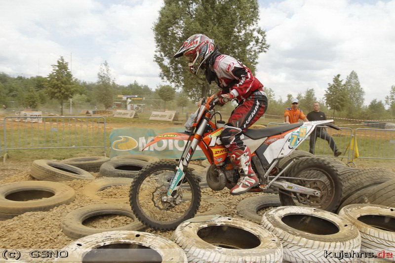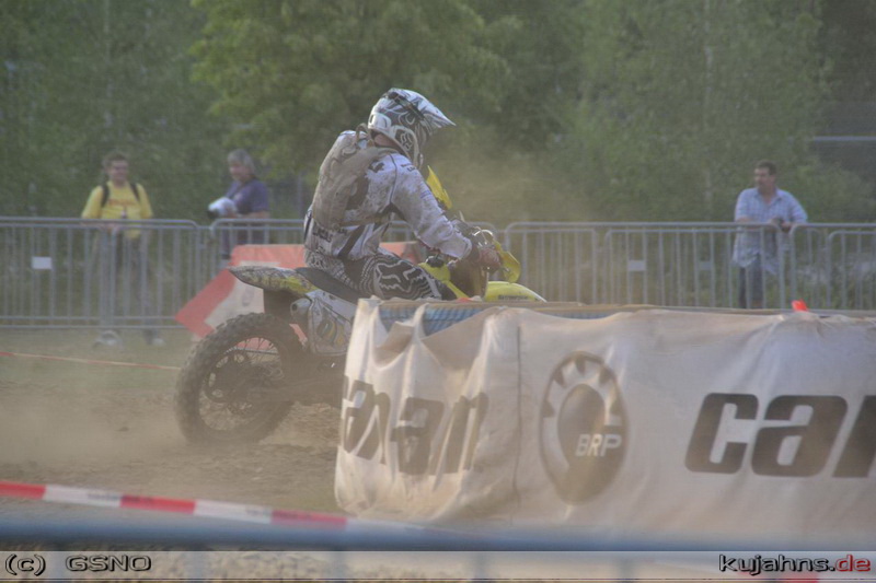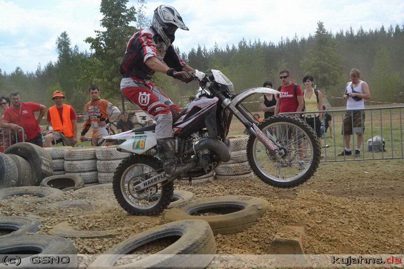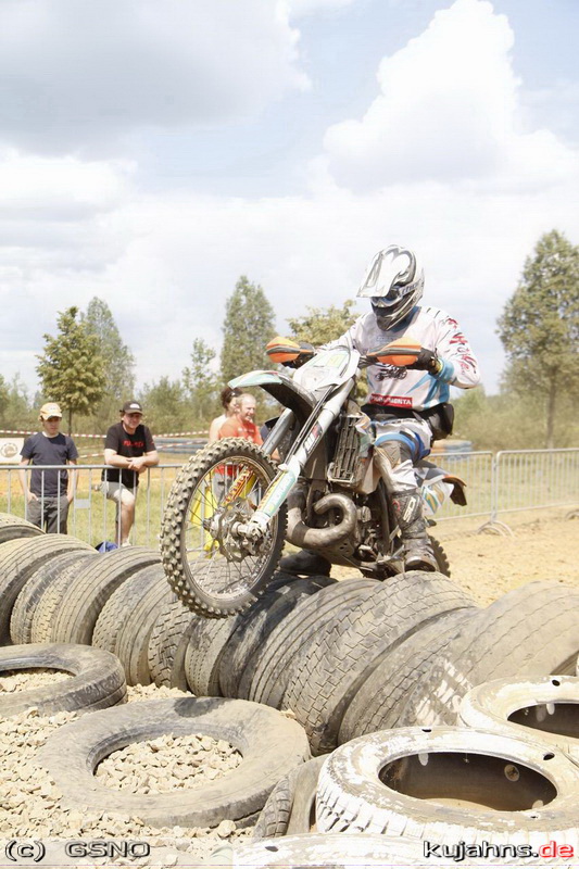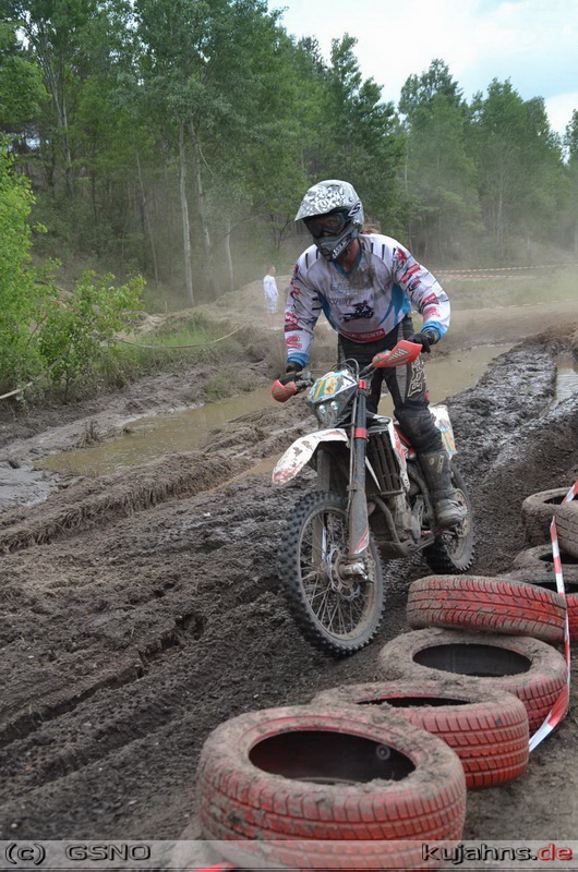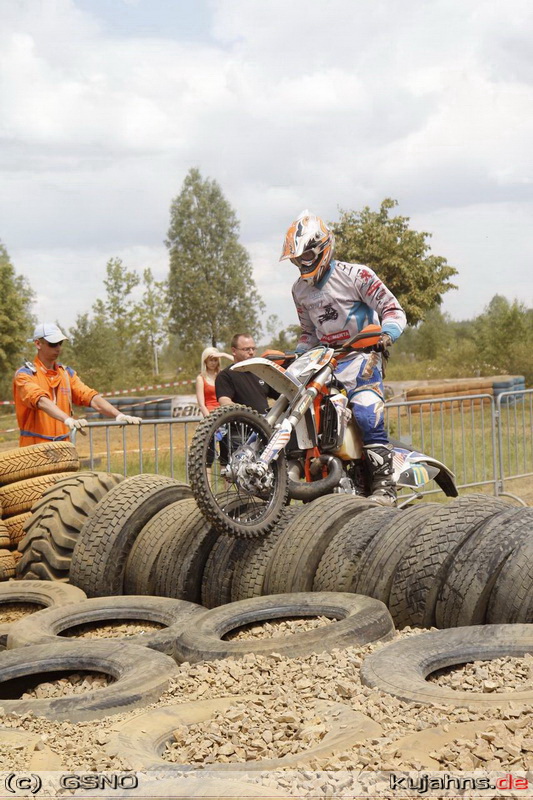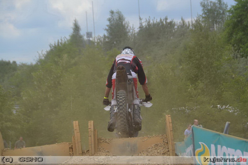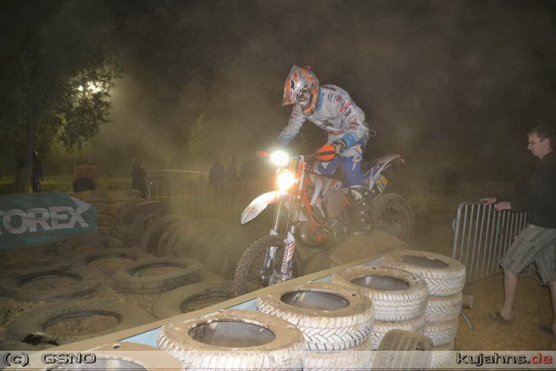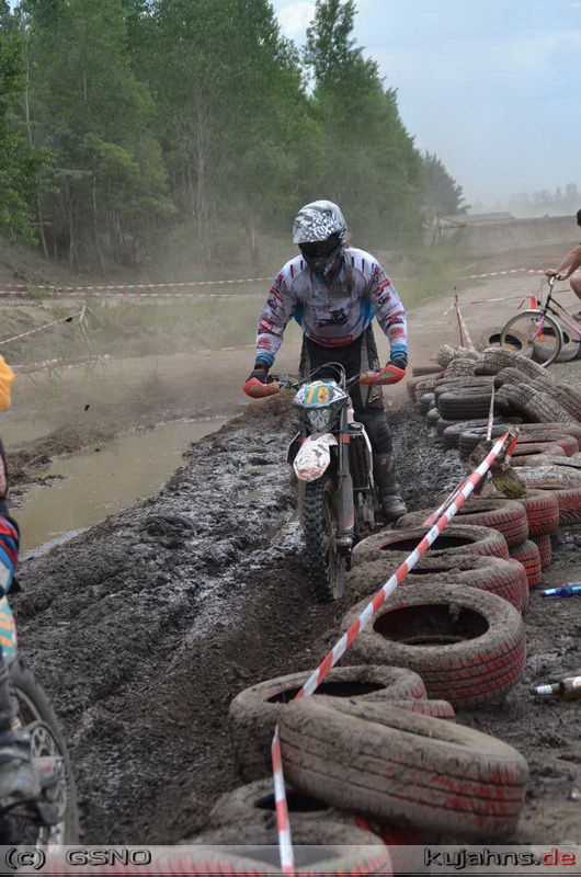 Bei oben stehender Schlagzeile könnte man meinen, es dreht sich um Horrormeldungen von der A20 aus dem vergangenen Jahr. Dem ist an dieser Stelle natürlich nicht so, wenn gleich sämtliches davon auf das Enduro Großevent vom Pfingstwochenende am Lausitzring zutrifft. Am Abend jenes Samstages fiel nach 2011 dort erneut der Startschuss für das 24h-Enduro, dem Endurance Day 2012 am Eurospeedway bei Senftenberg. Der Asphalt der Rennstrecke wurde aber lediglich beim Teilnehmer-Korso zur Siegerehrung unter die noch verbliebenen Stollen genommen. Es versteht sich von selbst, dass es die offroad beheimateten Endurofahrer ins Gelände und den Wald der nahen Umgebung zog. Die Voraussetzungen dafür wurden vom Veranstalter Baboons, den Mitarbeitern und Helfern des Eurospeedway sowie in erster Linie durch den MSC Hörlitz als streckenbauender und verantwortlicher Club geschaffen. Den Anforderungen, eine Strecke anzubieten, die den 105 Teams der Sport-Klasse (4 Fahrer, 4 Motorräder), den 9 Teams der Prestige-Klasse (4 Fahrer, eine Maschine) und den 45 Verrückten der Iron-Man-Klasse (ein Mann, eine Maschine) Endurovergnügen nicht ohne Anspruch gewährleistet, sind die Veranstalter auf jeden Fall gerecht geworden. In wie weit es sich für jeden Einzelnen wirklich um Vergnügen handelte, muss an späterer Stelle noch näher beleuchtet werden.