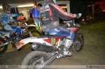 Patti – Kopf der MotoXschmiede und mit seinen MX-Erfahrungen natürlich als unser Starter auserkoren kam auch sehr gut durch, profitierte von Verirrungen einiger vor ihm fahrender und kam innerhalb der Top-20, allerdings mit steinharten Unterarmen, aus der erste Runde. Was dann auch gleich den ersten Wechsel notwendig machte. Nun musste also mein Bruder Frank ran, der zwar auch etwas mit dem leidigen Thema der verspannten Unterarme zu kämpfen hatte, aber die angepeilten 4 Runden abspulte. Der dritte Fahrer Martin wurde durch den eindeutig zu kleinen Tank an seiner Suzi daran gehindert, ebenfalls das Rundenquartett voll zu machen und so war es an mir, unser Team in die Nacht zu führen, denn es war bereits knapp 20°° Uhr und pro Runde vergingen etwa 25 Minuten. Bei der Fahrt in die Dunkelheit während meiner dritten Runde musste ich feststellen, dass der Einsatz einer Helmlampe, so gut sie bei normalen Sichtverhältnissen auch sein mag, in diesem Staub nichts bringt, im Gegenteil – sie behindert durch das Streulicht im Blickfeld dermaßen die Sicht, dass man beinahe lieber ganz ohne Licht fahren könnte. Nach dieser Erkenntnis und dem mittlerweile überwundenen Handikap der harten Arme lief es dann aber ziemlich gut und ich konnte sogar noch die fünfte Runde dranhängen.