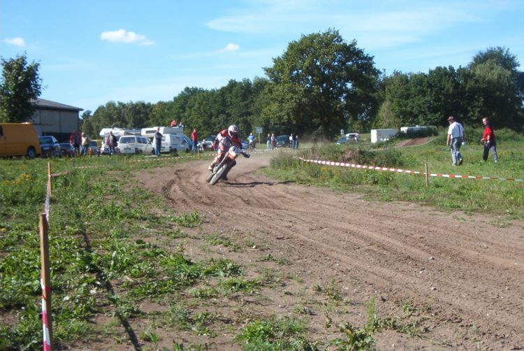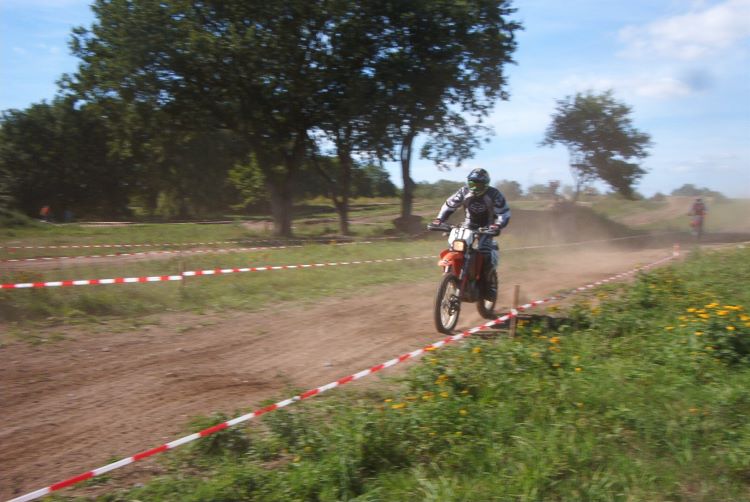 Kölzin: Die Anforderungen an die 140 Starter bei der vierten Fahrt um Punkte für die Enduro-Landesmeisterschaft hielten sich beim Rund um Kölzin auf Grund der sehr guten Witterung in Grenzen. Zum Scharfrichter wurde die erste Leistungsprüfung in der berühmt berüchtigten Kieskuhle. Hier erwischte es den Favoriten in der Klasse über 450 ccm-4-Takt und in der Championatswertung aller Klassen, Ronny Thoms, vom MC Kuhstorf hart. Nach einem Sturz sprang der Motor seiner KTM nicht mehr an und ihm blieb nichts anderes mehr übrig, als die schwere Maschine über 150 Meter durch den schweren Sand zu schieben. Damit scheint für ihn zumindest der Traum vom Championatstitel ausgeträumt. Sein Missgeschick nahm Guido Skoppek zum Anlass die ganze Sache etwas besonnener in Angriff zu nehmen. Sein Klassensieg bei den 250ern sicherte ihn vorzeitig die Meisterschaft und auch in der Championatswertung hat der 32-Jährige vom MC Mecklenburg-Strelitz beste Chancen.