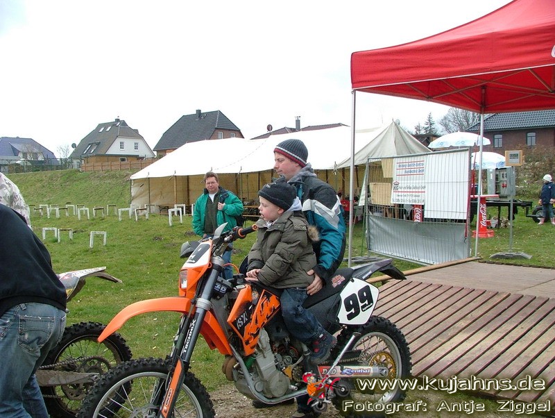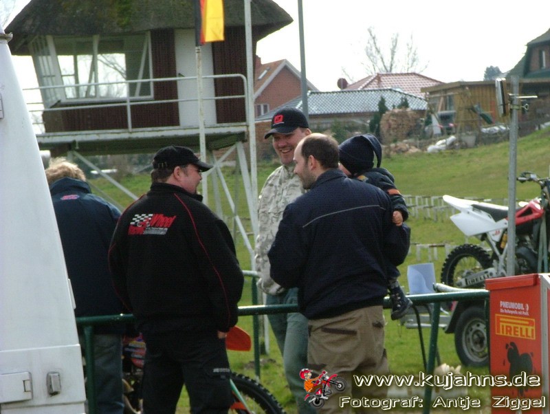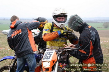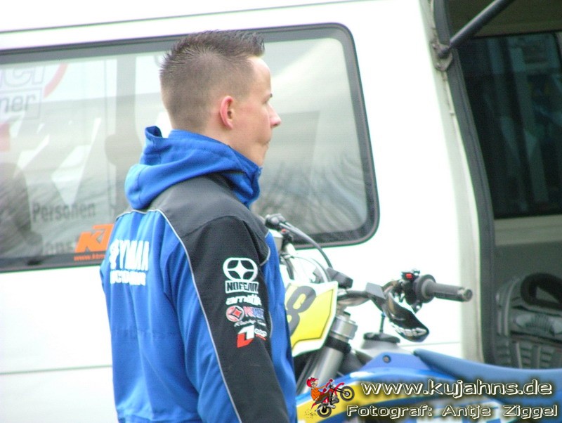 Im Fahrerlager schlich auch Falko Karbautzki umher und das wilde Spekulieren, wo er denn starten würde, ging los. Falko war aber nur zum Zuschauen da. Nachdem KTM das XC-Junior-Team gecancelt hat (Wirtschaftskrise), hat Falko noch nicht so recht die Orientierung, wo es in Zukunft mit ihm und dem Geländesport hingehen soll und ob es überhaupt weitergeht. Motorrad steht zwar noch zu Hause in der Garage, aber so richtig weiß er noch nicht was er machen will. (Sicher 2 – 3 LM-Läufe fahren, damit der MSC Rügen wieder Mannschaftsmeister werden kann) Falko, zieh dich um!! ;-)