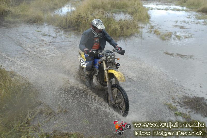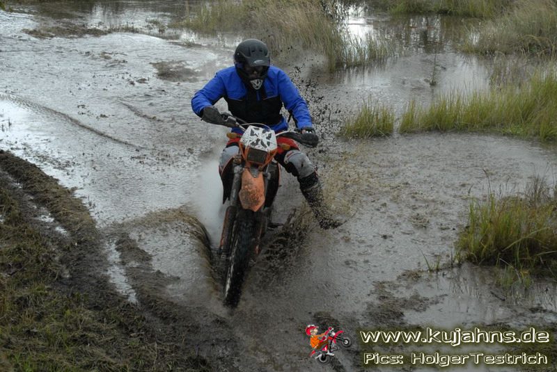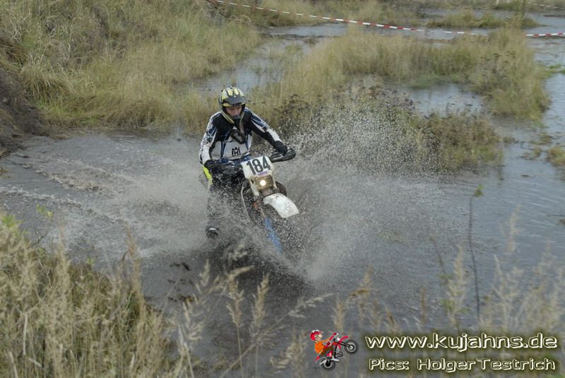 An künstlichen Hindernissen wird es auch diesmal nicht fehlen, soviel kann ich wohl schon sagen – aber auf eckig ausgehobene Gruben als Wasserlöcher stehen wir nicht so – wenn es bei uns Wasserdurchfahrten gibt, dann sind die natürlich (so wie beim Osterenduro 2007 in Brüssow). Du musst halt einfach ‘nen ordentlichen Regentanz veranstalten, dann bekommst du auch dein Wasser im Oktober. :o )