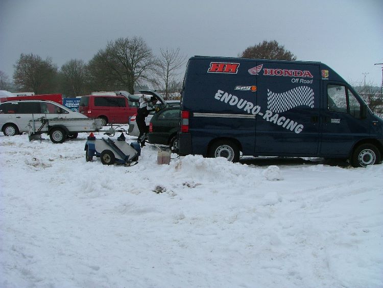 Aber man bekommt ja was fürs Geld, womit wir wieder beim Rennen sind. Im Fall Kölzin gab es sogar so viel, dass knapp die Hälfte der Starter schon vorzeitig aufgaben. Aufgrund der Witterung wurden statt der üblichen 3 nur 2 Runden angesetzt. Pro Runde gab es 2 Stunden Zeit !!! In der ersten Runde gab es zwei Sonderprüfungen. Einmal in der Kieskuhle und einmal auf der Crossbahn am Fahrerlager. In der zweiten Runde wurde dann nur noch einmal auf der Crossbahn gezeitet. Beide Sonderprüfungen waren vom Schnee befreit.
