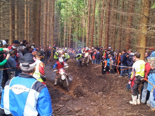 Heute ging es endlich in die „Herzkammer“ des deutschen Endurosportes. Rund um Zschopau, den meissten bekannt für schweres Gelände und tausenden von Fans an Strecke und Sonderprüfung. So war es dann auch. Nach einer 45 Kilometer langen Verbindungsetappe zwischen Sachsenring und ehemaligem MZ Werk, ging es dann hinein ins säschsische Unterholz. Als Scharfrichter fungierten dabei mehrere hundert Meter lange Auffahrten wie „Weberhang, Teufelsberg und der Forst von Börnichen“