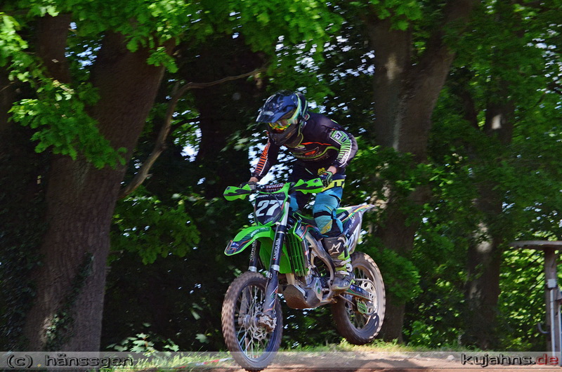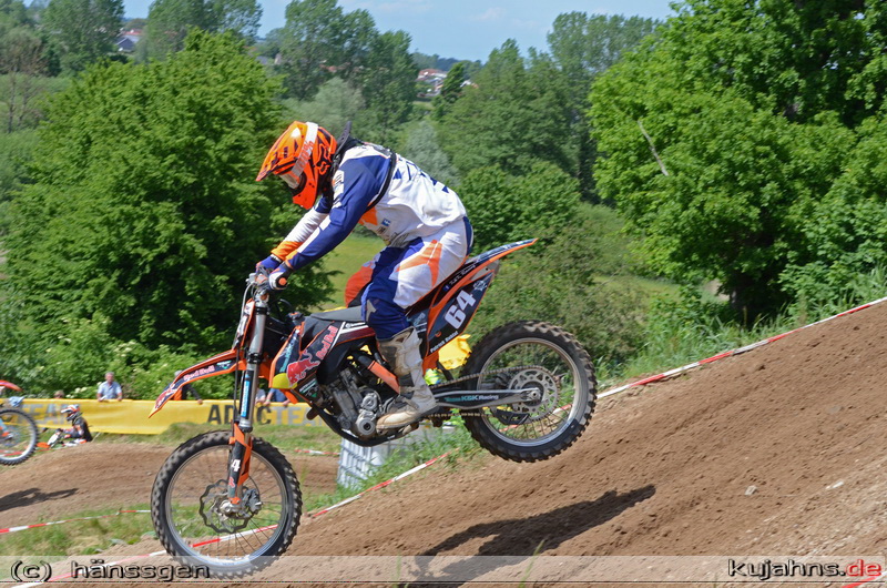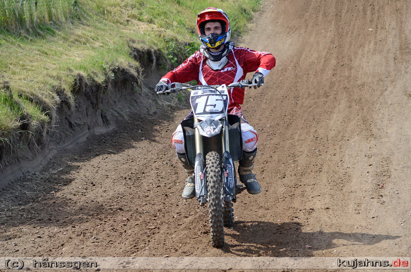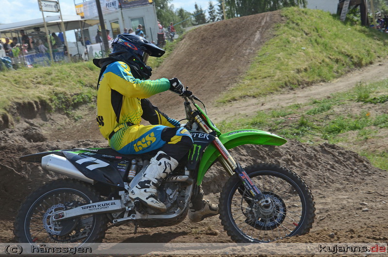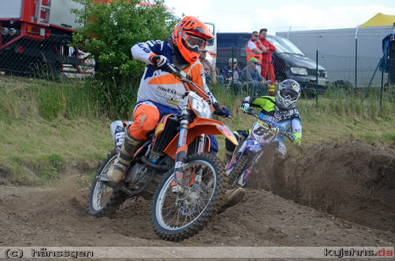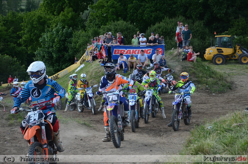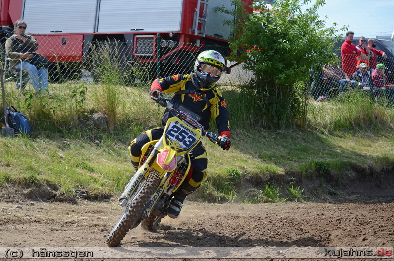 Nach einem schwächeren ersten Lauf, reichte der klare Sieg im zweiten Lauf für den Ueckermünder Brandon Voltz um die Gesamtführung nach zwei Wertungstagen zu halten. Bereits im Zeitraining ging es in dieser Klasse mächtig zur Sache, denn 36 Fahrer der 43 Bewerber bekammen einen Platz im Starterfeld.