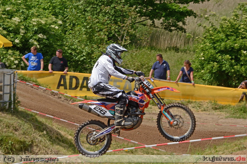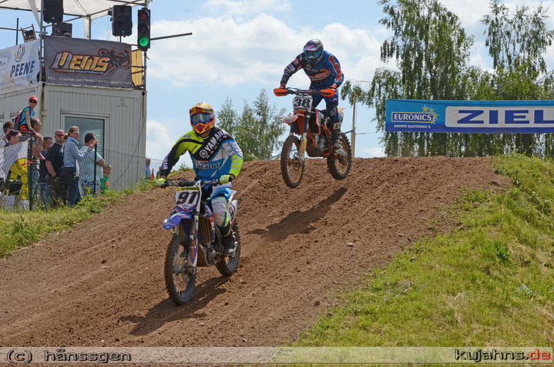 Am spannensten waren die Wertungsläufe um Punkte für MX2 Landesmeisterschaft. Mit maximalen Punkten konnte Felix Frick vom PSV Schwerin seine Gesamtführung auf sechs Punkte vor Lukas Stanislawski, dem Tagesdritten vom MC Wolgast ausbauen. Der außer Konkurrenz startende Burg Stargarder Dan Kirchenstein belegte den zweiten Platz. „Heute konnte ich erstmals nach meiner Fußverletzung schmerzfrei durchfahren und werde alles unternehmen, um die Führung zu behalten,“ sagte der Sieger nach dem Rennen.
