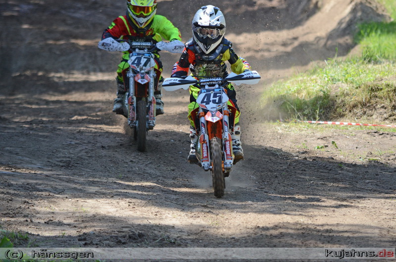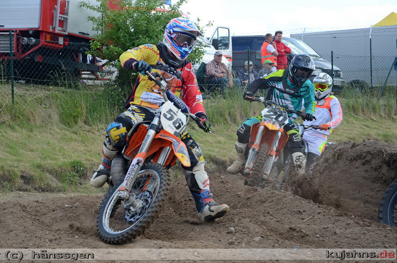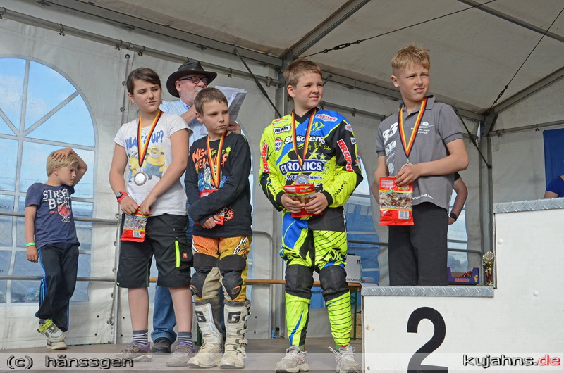 Komplettiert wurde das Rennprogramm durch LM-Läufe in den 65 und 50 cccm Klassen der jüngsten Motocrosser. Bei den 65ern siegte der Brandenburger Nick Domann überlegen für den Besten in der MV-Wertung, Tim Ksienzyk