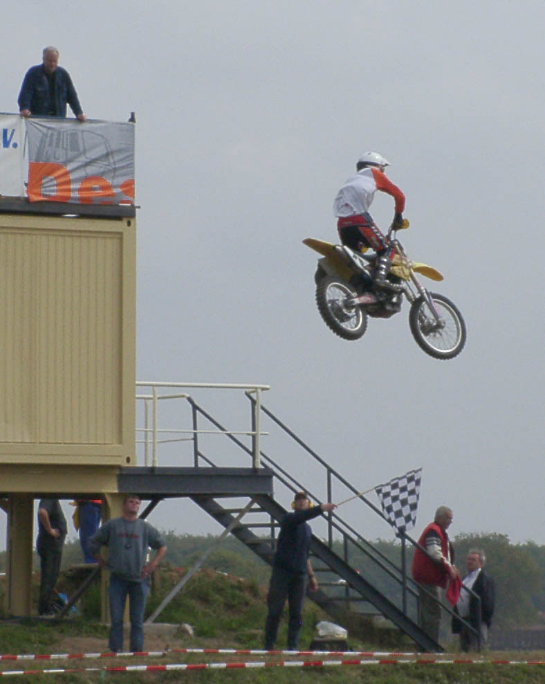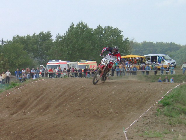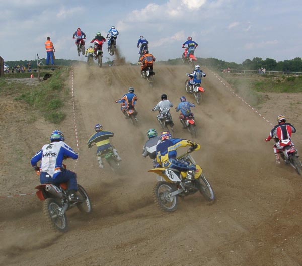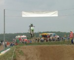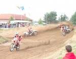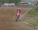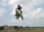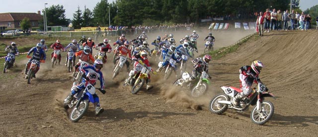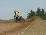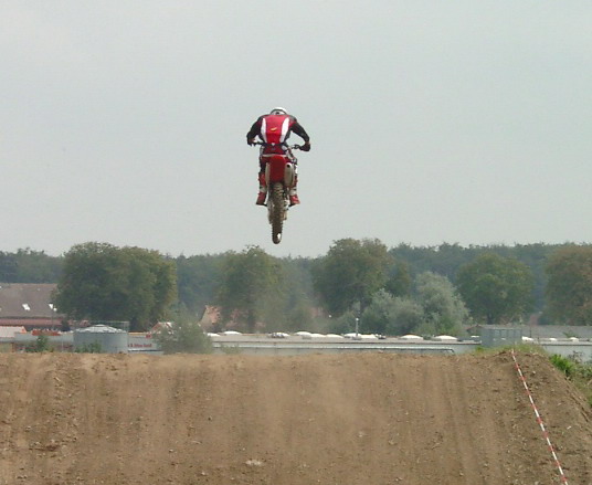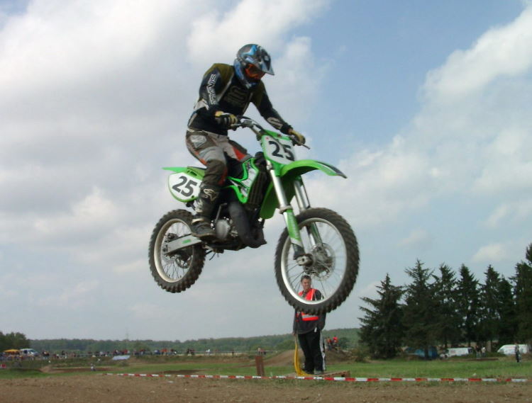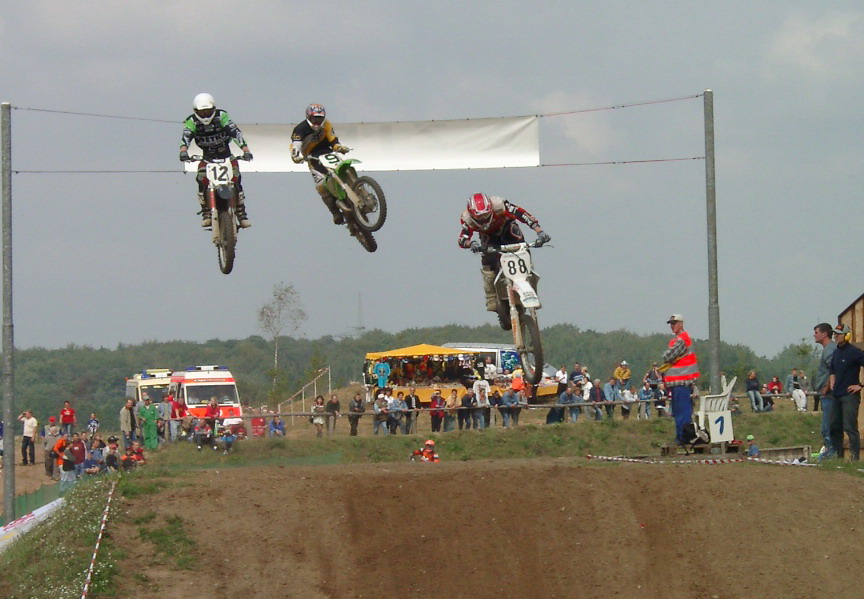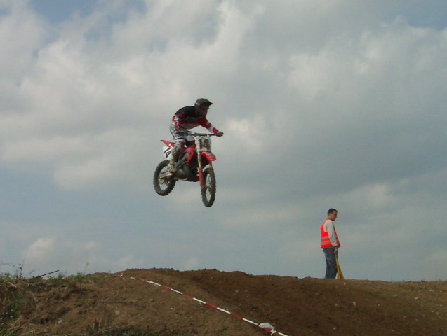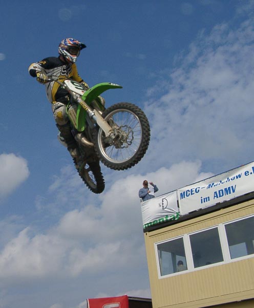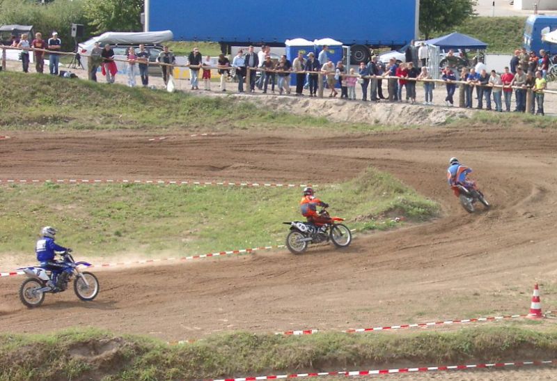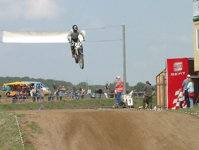 Michael Dittmann hat zwar auf dem Siegerpodest gesagt, dass die Strecke etwas kurz ist, aber wenn man bedenkt dass die Strecke in Bergen (ja genau, ich meine die DMX-Stecke vom MSC Rügen!) nur zwanzig Meter länger ist als die in Malchow, kann man das gleich mal vergessen. Und wenn ich sage, dass sich die Strecke flüssig fahren lässt, will mir doch auch keiner widersprechen, oder? Ich fand sie auch geil! Auf jeden Fall ist es richtig schön anzusehen, dass ein Verein in Meck-Pomm, der vorher noch nicht viel mit MX zu tun hatte, diese „Probe“ so was von super gemeistert hat! Es war wirklich alles vom Feinsten (außer dass der Arzt morgens ne halbe Stunde zu spät kam, aber das sei bei der ersten Veranstaltung verziehen!). Richtig gut hat mir die verzinkte Startmaschine gefallen (ich hab ja nicht umsonst beide Starts gewonnen ;-)), und gut war auch, dass Technik in Form von Radladern und Treckern vorhanden war. Jetzt kommt aber noch ein Bereich, wo die Malchower bei mir ganz dick gepunktet haben, und zwar: die Beschallung! Nicht nur, dass es nicht die Standard Lautsprecher aus Uropas Zeiten (ja ja, vorm Kriech da war...;-)) waren, die den Sound von sich gegeben hatten (es waren richtig dicke Boxen am Start!), es gab auch noch eine Live-Band! Und außer beim Zwarte Cross in Holland (ein riesiges MX-Festival wo über 20.000 Zuschauer kommen) hab ich das in meiner über 10-jährigen MX-Kariere noch nicht überlebt (oder ich kann mich nicht mehr dran erinnern ;-)). Und die Jungs, die richtig fetten Punk-Rock gespielt haben (die Musik hat auch mich als extrem eingefleischten Rapmusikfanatiker beeindruckt), hatten richtig was drauf! Leider weiß ich den Namen der Band nicht, denn ich würde sie auf jeden Fall weiterempfehlen! Wer den Namen weiß kann mir ja ne Mail schicken denn mach ich noch n bisschen Schleichwerbung...;-)) Leider waren etwas wenig Zuschauer in Malchow. Also für nächstes Jahr wünsche ich euch 3000+ ;-)))