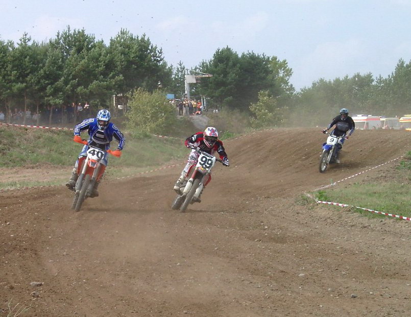 Ich dachte, dass der in letzter Zeit verletzte Dirk Hemmerling wieder in dieser Klasse mitmischen würde, aber er war leider noch nicht da. Andreas Feldt hingegen schien wieder gut in Form zu sein und zeigte das auch mit der besten Trainingszeit. Und da er auch eine Suzuki RM-Z 250 fährt (so wie ich) hat er natürlich beide Läufe gewonnen ;-)). Nee, Spaß bei Seite, Andreas hat zwar gewonnnen, aber eher wegen seinem Fahrkönnen (das soll jetzt nicht heißen dass unser Mopped schlecht läuft, ganz im Gegenteil ;-)))). Der in Wolgast wohnende und für Lübtheen startende Veit Scheddin (musst du in Wolgast eigentlich Trainingsgebühr zahlen? ;-)) war auch wieder vorne mit dabei, nachdem er die letzten beiden Rennen klar für sich entscheiden konnte. Er kam beide Läufe hinter Andreas auf Platz Zwei ins Ziel. Der Rostocker EMXer Axel Zimmermann konnte seine dicke KTM auch mal wieder auf Platz drei (auch in beiden Läufen) schieben, und das noch vor den für den MSV Wilhelmsburg startenden Dirk Krasemann aus Prenzlau. Ernennenswert ist auch die Leistung von Fred Schleifer, der im Tagesergebnis auf Platz fünf kam, denn er ist schon einer von den Senioren, die über 45 Jahre alt sind, also ein „echter Senior“! Gut so...